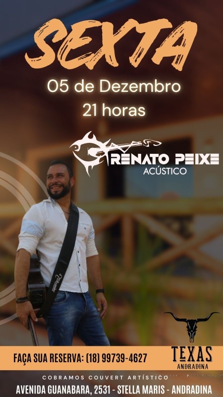 TEXAS ANDRADINA - SEXTA - 05/12 - 21h - RENATO PEIXE