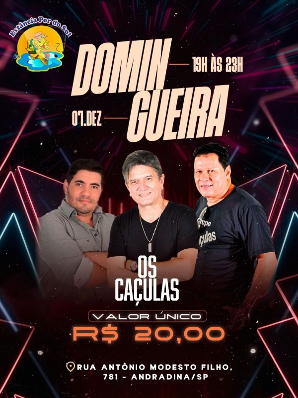 ESTÂNCIA POR DO SOL - DOMINGO - 07/12 - 19h às 23h - DOMINGUEIRA COM OS CAÇULAS