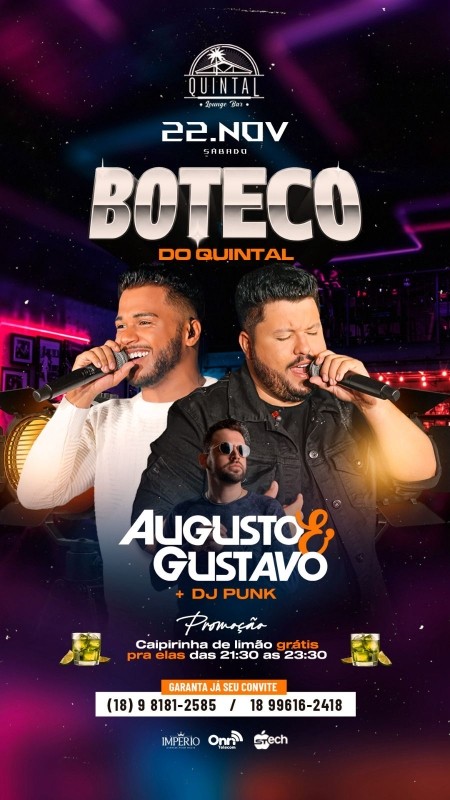 QUINTAL LOUNGE BAR - SÁBADO - 22/11 - 21h -AUGUSTO & GUSTAVO / DJ PUNK