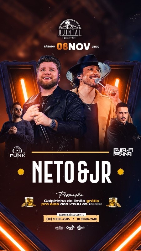QUINTAL LOUNGE BAR - SÁBADO - 08/11 - 21h30 -NETO & JR / DJ PUNK / DJ BRUNO GUELFI