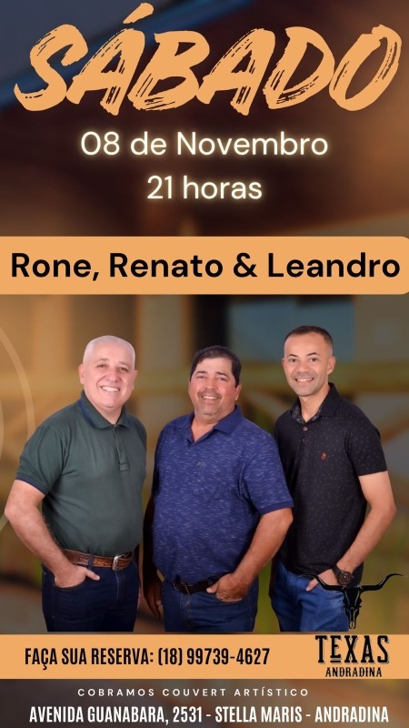 TEXAS ANDRADINA - SÁBADO - 08/11 - 21H - RONE, RENATO & LEANDRO