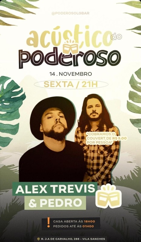 PODEROSO LOUNGE & BAR - SEXTA - 14/11 – 21h – ALEX TREVIS & PEDRO B