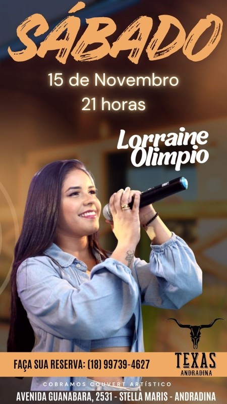 TEXAS ANDRADINA - SÁBADO - 15/11 - 21h - LORRAINE OLIMPIO
