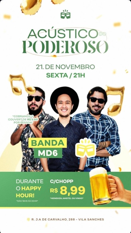 PODEROSO LOUNGE & BAR - SEXTA - 21/11 – 21h – BANDA MD6