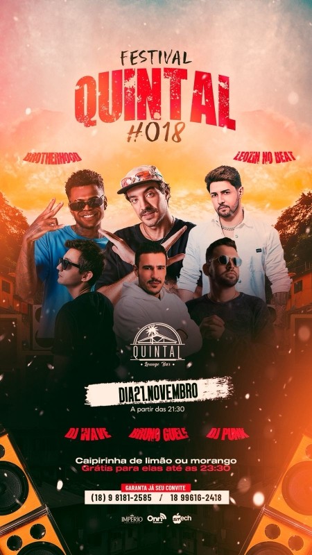 QUINTAL LOUNGE BAR - SEXTA – 21/11 – 21h - LEOZIN NO BEAT / BROTHERHOOD / DJ BRUNO GUELFI / DJ WAVE / DJ PUNK