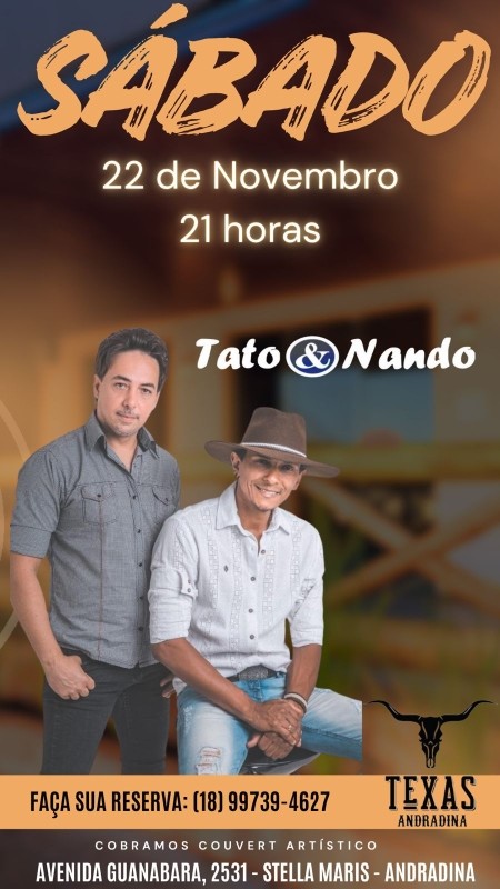 TEXAS ANDRADINA - SÁBADO - 22/11 - 21h - TATO E NANDO