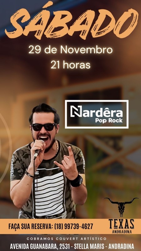 TEXAS ANDRADINA - SÁBADO - 30/11 - 21H - NARDÊRA POP ROCK