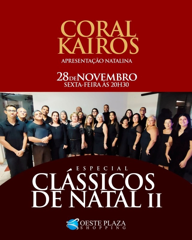 OESTE PLAZA SHOPPING - SÁBADO - 28/11 - 20h30 - CORAL KAIRÓS - ESPECIAL CLÁSSICOS DE NATAL II
