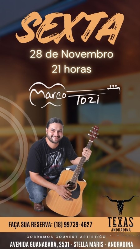 TEXAS ANDRADINA - SEXTA - 28/11 - 21h - MARCO TOZI