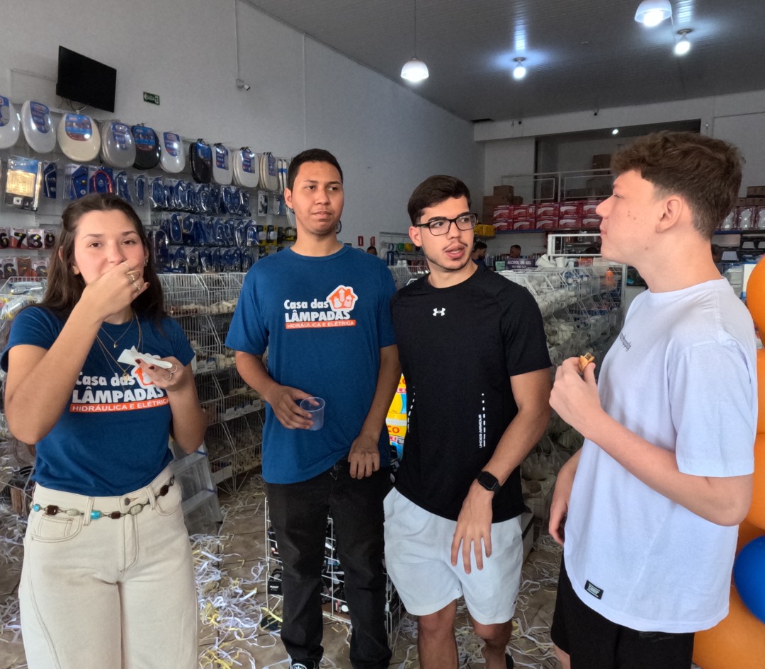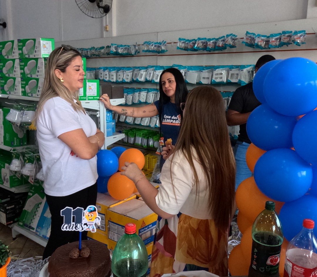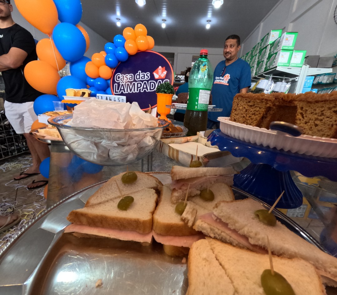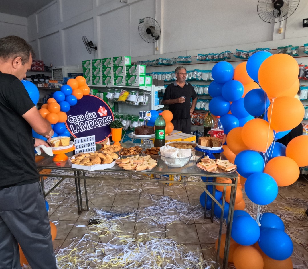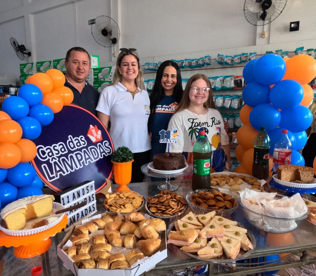 A loja é especializada em lâmpadas, oferecendo uma grande variedade de opções de iluminação para sua casa ou empresa. Além disso, oferece ventiladores, climatizadores, interruptores, torneiras, chuveiros, luminárias, tubos, conexões e muitos outros materiais hidráulicos e elétricos de alta qualidade. A Casa das Lâmpadas é a escolha certa para suas necessidades de iluminação e hidráulica. Sob o comando da empresária Gislaine Cristina Pereira e seu filho Lucas Andrey Pereira Sereno que recepcionaram os clientes a amigos que compareceram no delicioso café da manhã preparado com muito carinho, tendo uma variedade de bolos e salgados, além de muita alegria e ótimo bate papo.