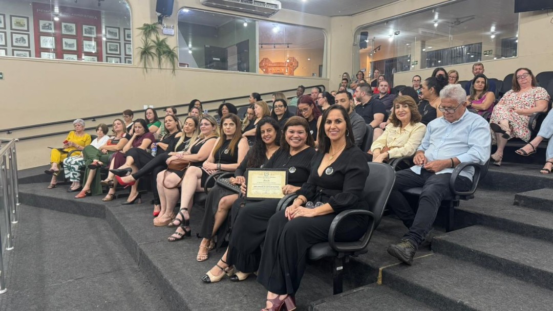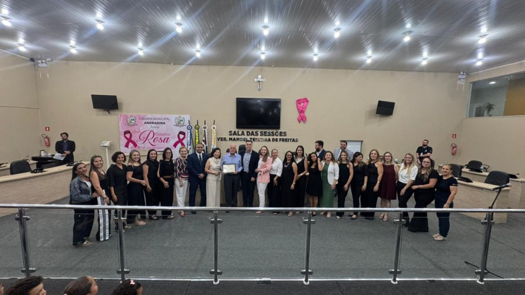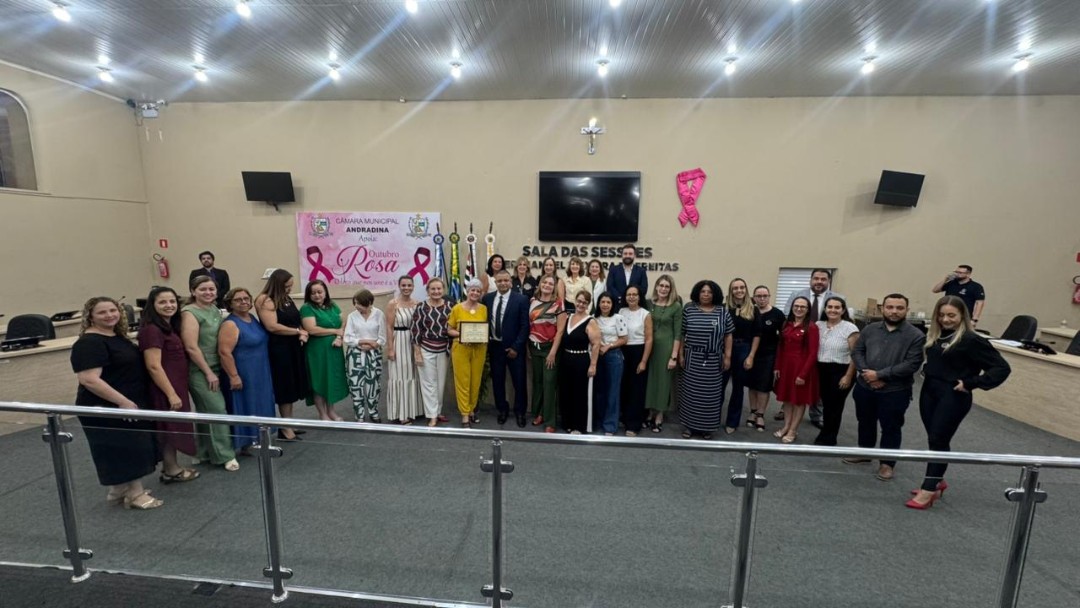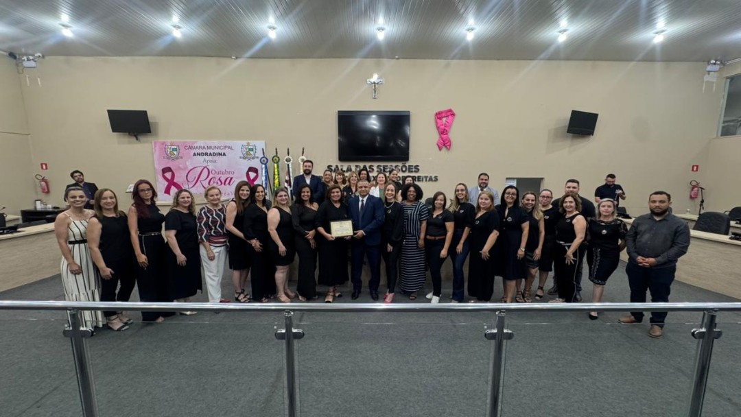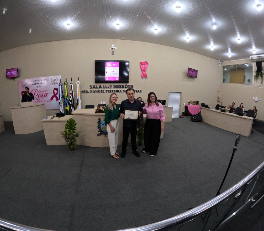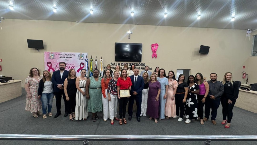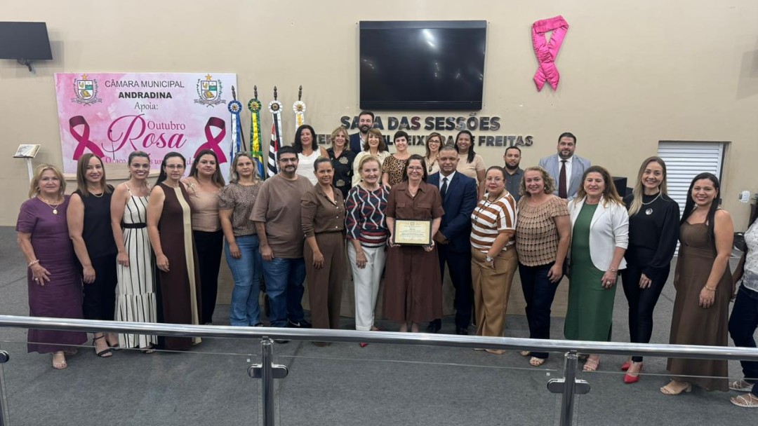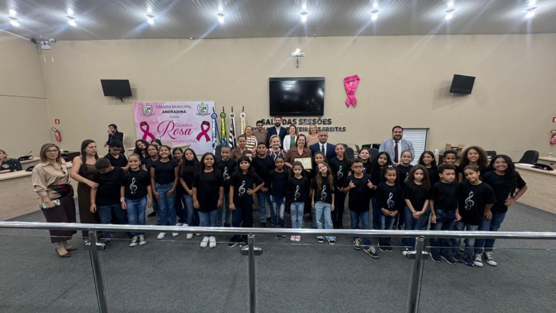 Na quinta-feira (30/10), a Câmara de Vereadores de Andradina foi palco de homenagem a profissionais e instituições que contribuíram para o desenvolvimento da educação do município, em propositura de Moção de Aplausos do vereador Professor Kelebinho. A mesa foi composta pelo propositor Professor Klebinho, pela vereadora Eloá Pessoa representando o presidente da câmara Edgar Dourado, pela Secretaria de Educação de Andradina Estela Goda e pelo Subseretário de Educação Carlos Shinkado. Antes das homenagens o público presente teve o prazer de apreciar a apresentação do projeto Palco Escola da EMEBI Maria Vera Quental Tamai, com o coral formado por crianças que apresentou três canções.