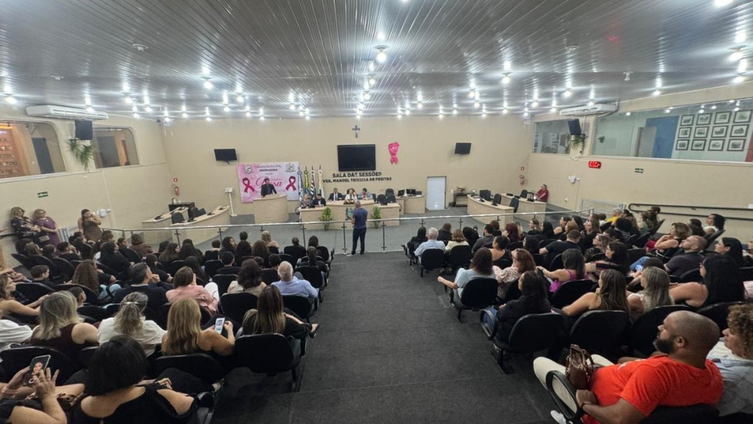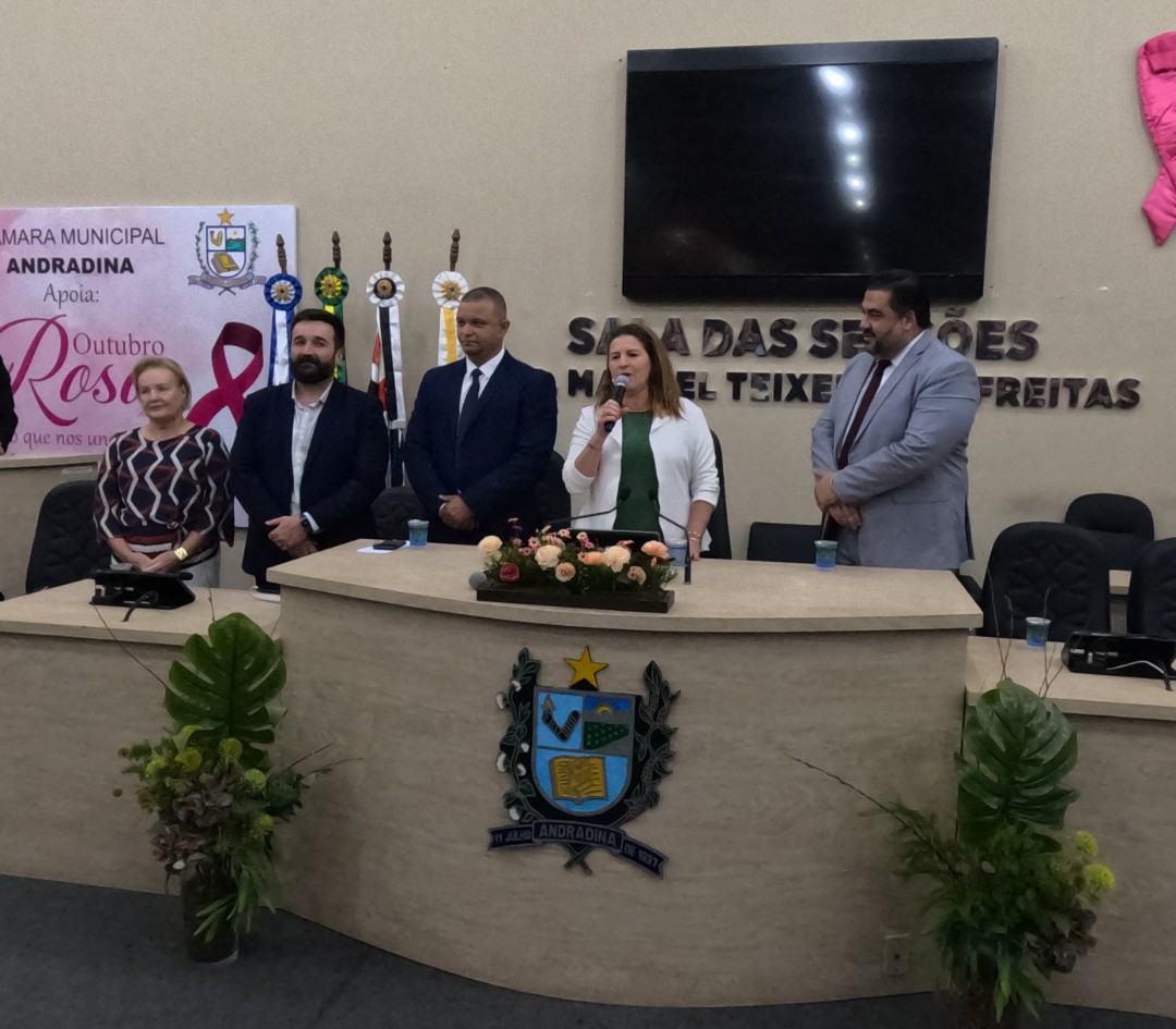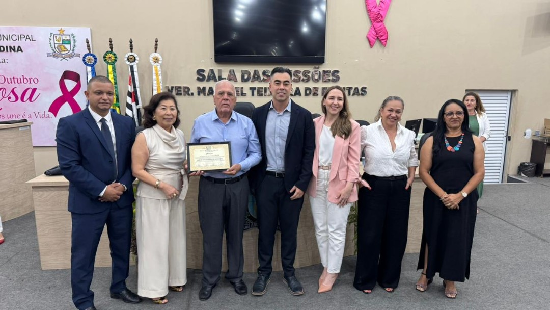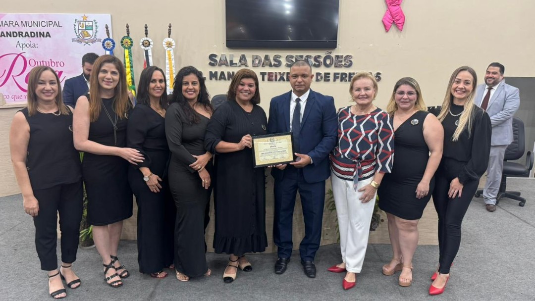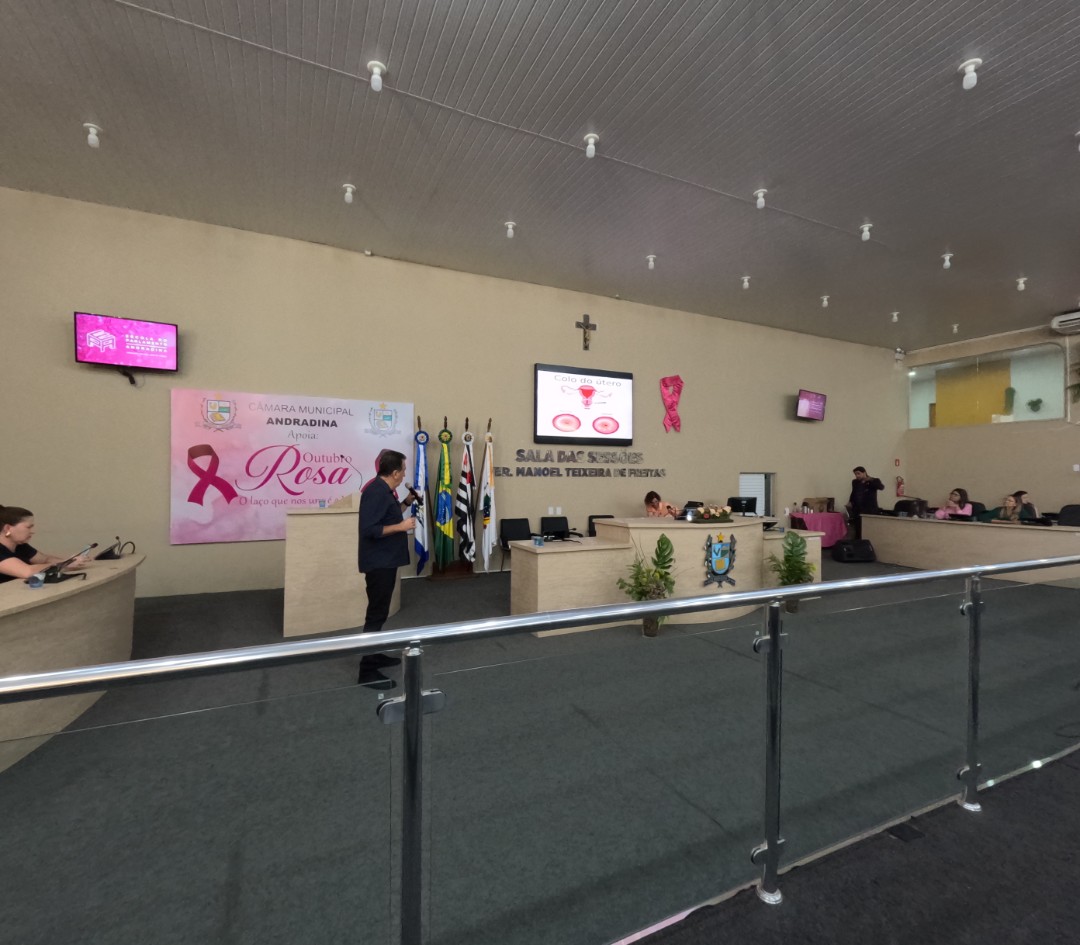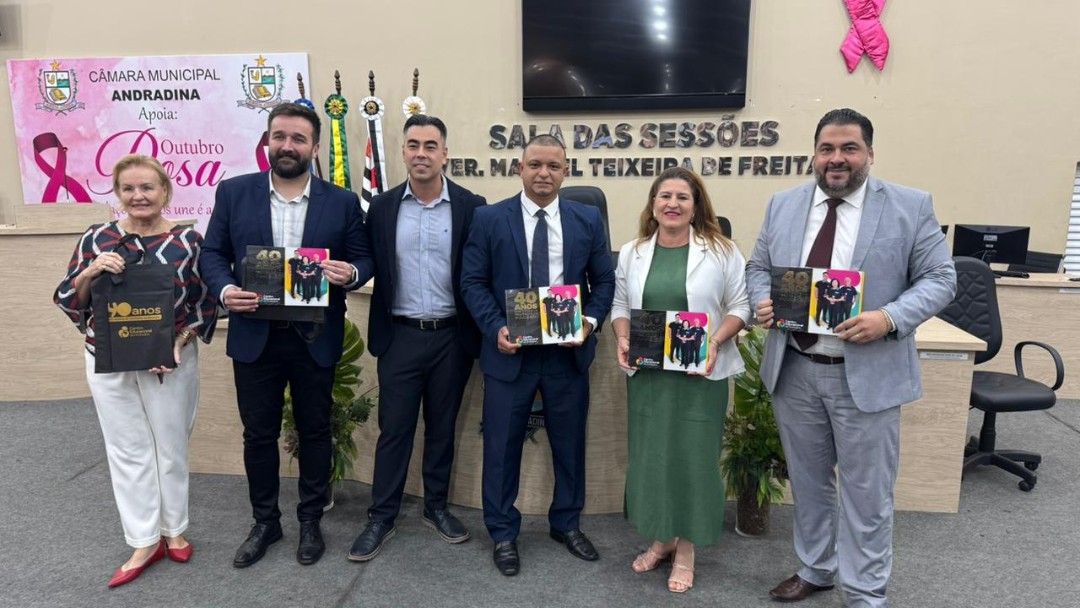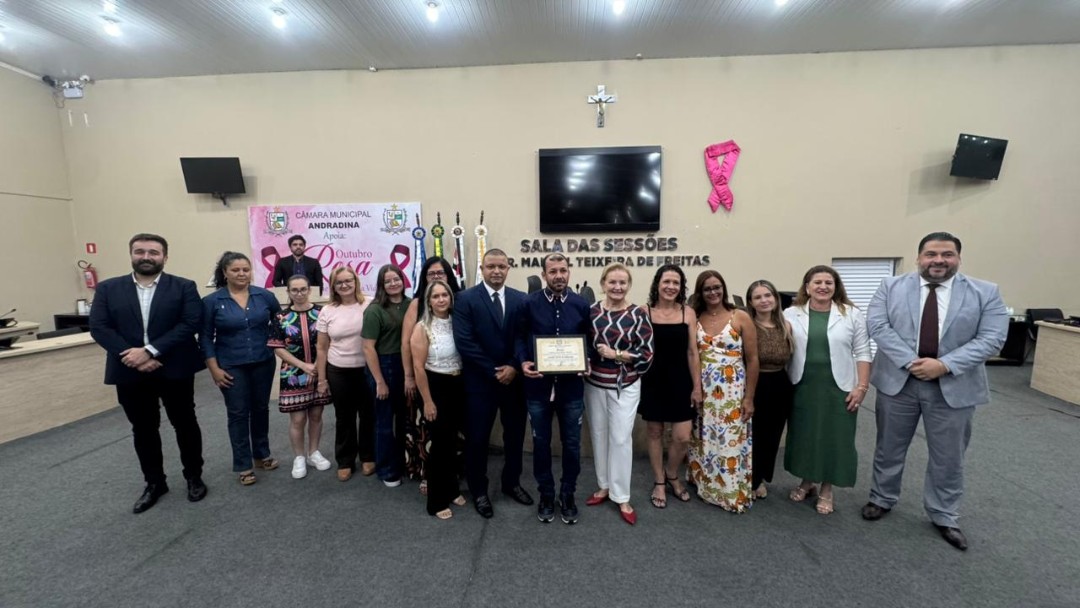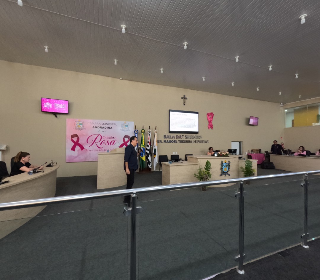 Na quinta-feira (30/10), a Câmara de Vereadores de Andradina foi palco de homenagem a profissionais e instituições que contribuíram para o desenvolvimento da educação do município, em propositura de Moção de Aplausos do vereador Professor Kelebinho. A mesa foi composta pelo propositor Professor Klebinho, pela vereadora Eloá Pessoa representando o presidente da câmara Edgar Dourado, pela Secretaria de Educação de Andradina Estela Goda e pelo Subseretário de Educação Carlos Shinkado. Antes das homenagens o público presente teve o prazer de apreciar a apresentação do projeto Palco Escola da EMEBI Maria Vera Quental Tamai, com o coral formado por crianças que apresentou três canções.